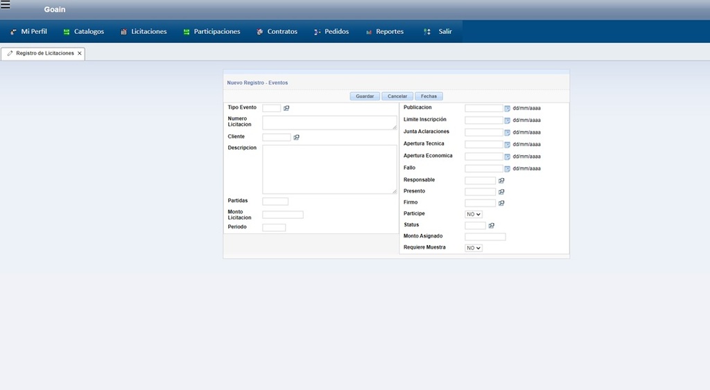 Todos los registros desde las fechas del inicio de cada evento, ya sea una Cotización, una Invitación Restringida, Adjudicación Directa o Licitación, Ampliación de Contratos, con la finalidad de llevar el registro de todo lo que se venda al gobierno.